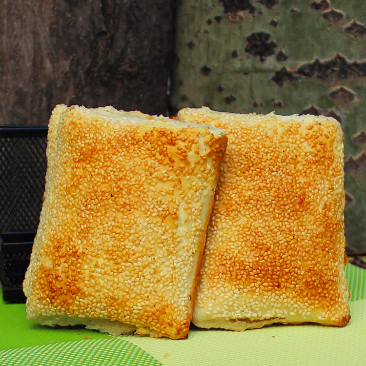 将其改制成“半发面的芝麻烧饼”,不仅保留了淳朴的香味,烧饼里面更软糯。特别是,刚出锅的“半发面的芝麻烧饼”,外焦里嫩,味道淳朴、香气扑鼻,实在好吃。