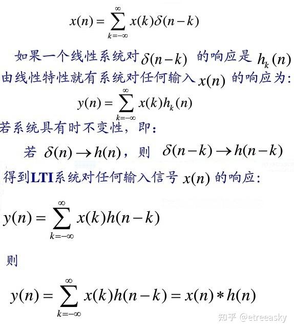 第二,更重要的是,因为线性和时不变性两项性质,冲激响应h 为基底的输出,实际上是一个卷积:
