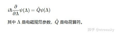 电荷本征方程解:电荷本征态ψq 代表携带固定内禀电荷q的量子态,U (1) 规范变换ψ→exp(iqχ/ℏ)ψ 下仅整体相位偏移,物理可观测量不变,是电磁相互作用「最小耦合原理」的前提,保证电磁规律的规范不变性。任意满足归一化的波函数 ψ(r,t) 都是 Q^ 的本征态,无特殊函数形式。其定态解可视为电荷 q 的本征态(如库仑势中的氢原子态)。电荷本征态ψq(0)ψq(Λ)=exp(−iqΛ/ℏ)ψq(0),满足Q^ψq=qψq。代表具有确定电荷q的状态,随规范参数变化产生相位因子exp(−iqΛ/ℏ),相位变化率正比于电荷值。体现诺特定理内部规范对称性U(1)导致的电荷守恒。