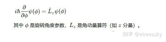 角动量算符作用于含相位波函数(角度波函数): 角动量本征方程(或称为绕轴旋转的波动方程)。 角动量算符是旋转的生成元。对于含相位(角度 θ )的波函数 ψ(θ) ,角动量算符作用其上通常表现为 Lz=−iℏ∂/∂θ 。这直接对应于绕z轴的旋转不变性。在更广泛的物理背景下可以推广为描述自旋进动或涡旋波的方程,例如在声学或光学中描述轨道角动量的亥姆霍兹方程的角向分量。