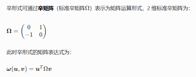 辛形式是辛空间上的一种非退化、反对称、双线性型,是辛空间的固有几何结构,类比欧氏空间的 “内积(度规)”,但辛形式是辛空间的 “核心度规”,决定了空间中矢量的正则对偶关系。