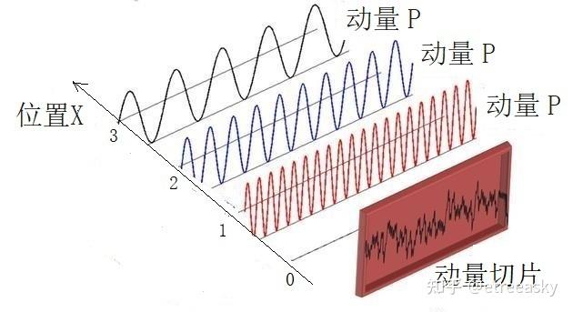 位移x=0点有动量切片(该切片上的总动量为P),与x=1、2、3点的动量切片1、动量切片2、动量切片3的总动量P都一样多。无论X平移到哪个位移点,这个位置点对应的那个切片上的总动量既不增加也不减少,不同切片上动量P总是保持恒定不变的。动量切片总动量恒定。