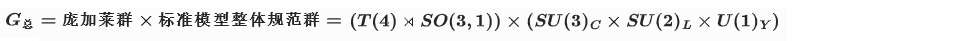 总庞加莱群标准模型整体规范群,时频平移群T⊂T(4),可等价嵌入参与运算;