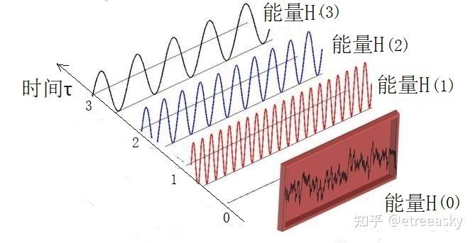 设能量本征值对时间的函数为H(τ),0点处能量H的本征值总量为H(0)。则有每个时间点τ的能量H的本征值总量恒等:H(0)=H(1)=H(2)=H(3),形象而言,‘能量-时间’频域时域结构草图H(τ)如下: