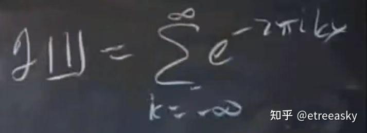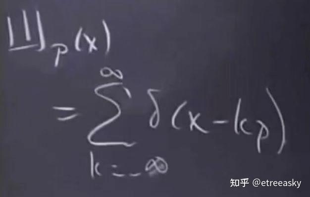 狄拉克脉冲序列梳状函数(Ш函数),为间隔等于p的δ脉冲函数的加和。我们在频域每个整数点取样本集得到标准梳状函数Ш(p=1)、在时域每个整数点取样本集得到对偶梳状函数 F(Ш)。根据波粒二象性我们知道,如果频域梳状函数Ш是脉冲函数: