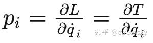 自由粒子的正则动量 P,是哈密顿量 H 对广义速度 q˙i 求偏导: Pi=∂H/∂q˙i