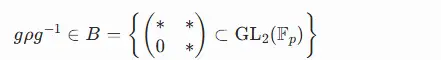 ①可解分解与上三角化:若费马方程存在整数解,则通过弗雷构造导出的半稳定椭圆曲线 E 对应的伽罗瓦表示 ρ:GQ→GL2(Fp) 必须满足Borel 子群共轭条件。即存在 g∈GL2(Fp),使得共轭表示 gρg^−1 落在 Borel 子群 B 中,其矩阵形式为: