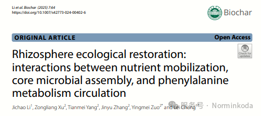 文章题目:Rhizosphere ecological restoration: interactions between nutrient mobilization, core microbial assembly, and phenylalanine metabolism circulation
