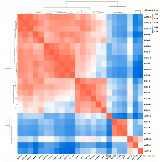 样本间相关性分析和PCA表明生物学重复性好,数据可靠。