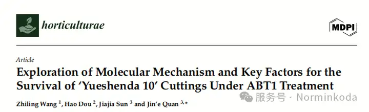文章题目:Exploration of Molecular Mechanism and Key Factors for the Survival of 'Yueshenda 10' Cuttings Under ABT1 Treatment