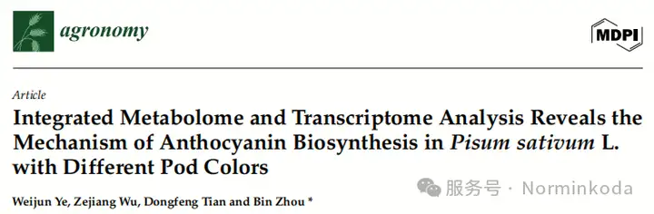 文章题目:Integrated Metabolome and Transcriptome Analysis Reveals the Mechanism of Anthocyanin Biosynthesis in Pisum sativumL. with Different Pod Colors