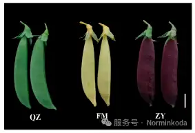 本研究采用多组学整合分析策略,系统解析了三种不同颜色豆荚豌豆(QZ-绿, FM-黄, ZY-紫)花青素积累的代谢和转录调控机制。