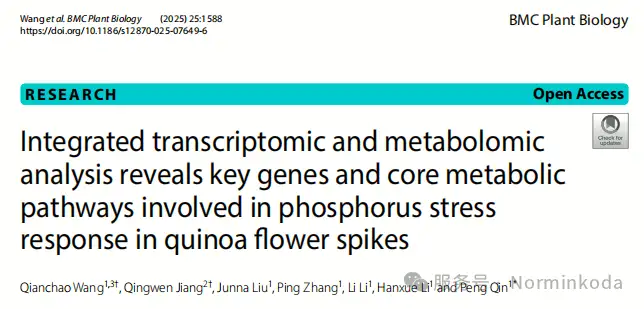 文章题目:Integrated transcriptomic and metabolomic analysis reveals key genes and core metabolic pathways involved in phosphorus stress response in quinoa flower spikes