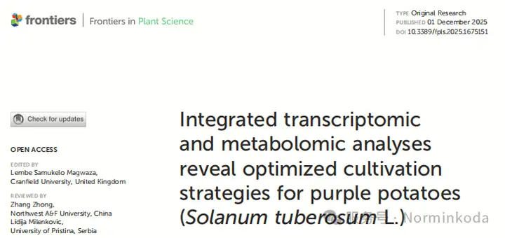 文章题目:Integrated transcriptomic and metabolomic analyses reveal optimized cultivation strategies for purple potatoes (Solanum tuberosum L.)
