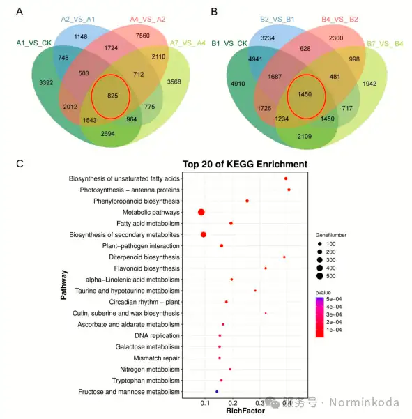 生物信息学分析: 对DEGs进行KEGG通路富集分析,找出受干旱调控的关键代谢通路。