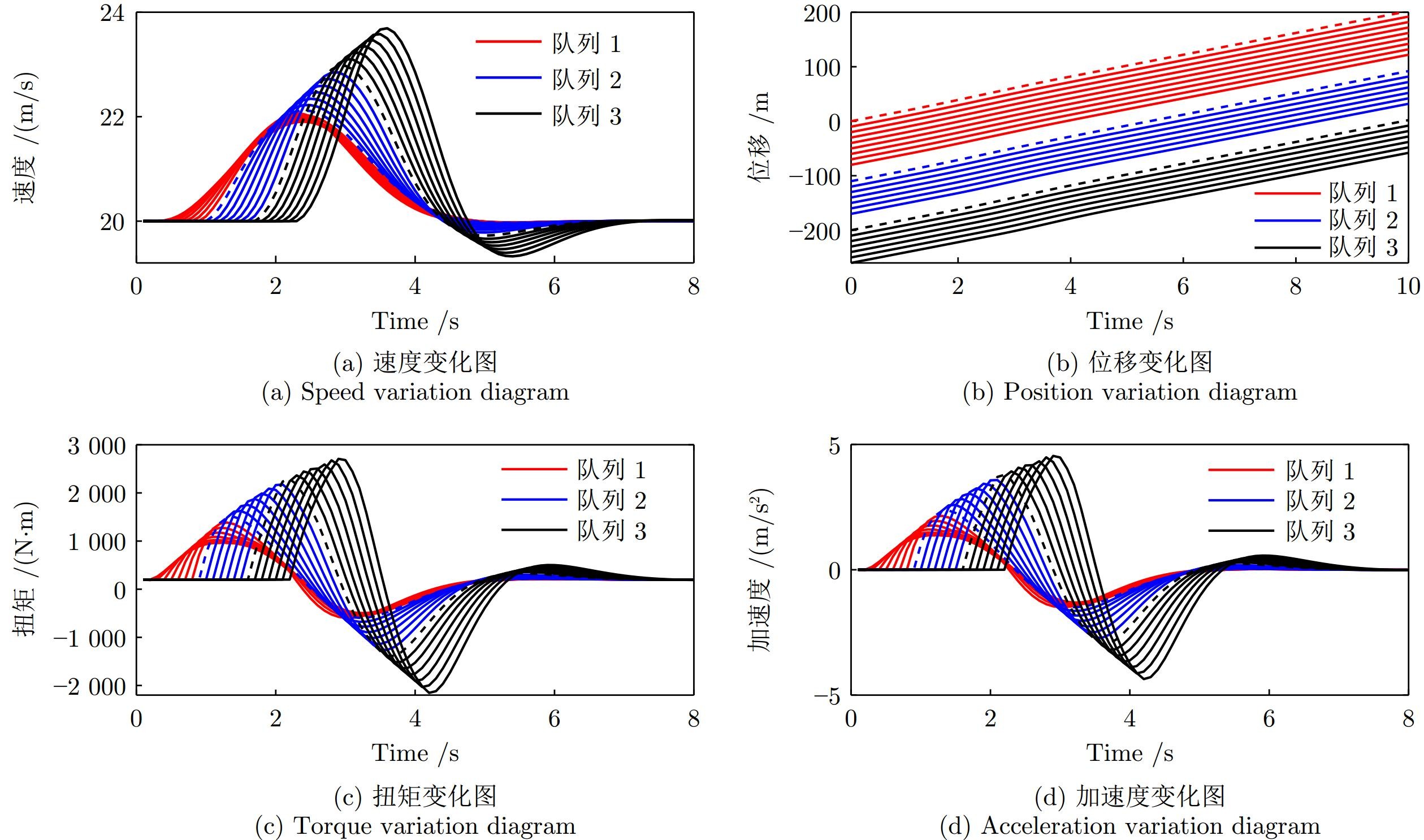 理论分析和仿真结果共同证实: 所提出的具有适当通信拓扑的DMPC框架能够在保持弦稳定性的同时有效协调多个车辆队列, 即使在具有挑战性的条件下也能表现良好. 为智能交通应用中多队列系统协同控制的实际实现提供了宝贵见解.