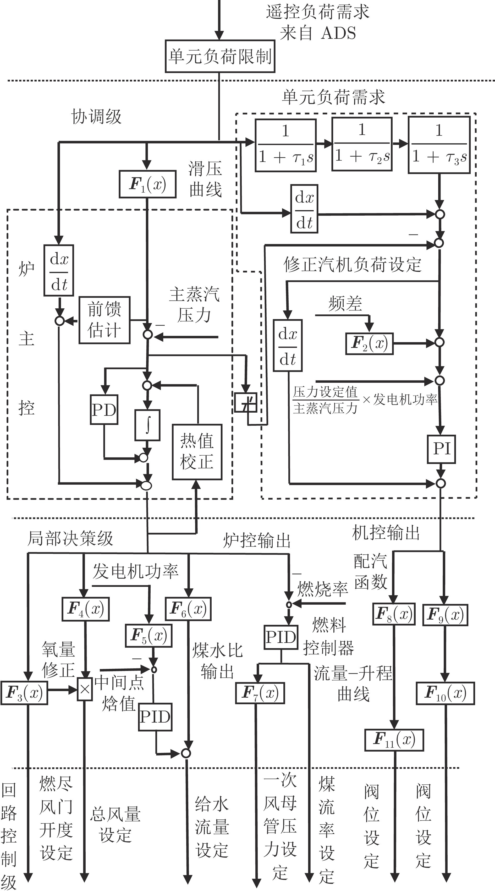 在协调控制层面, 机组动态响应能力存在明显不足. 由于燃烧、传热过程具有大惯性特性, 当前控制方案将机炉系统解耦为两个响应特性差异显著的单回路, 仅通过抑制汽机快速响应来匹配锅炉慢过程, 导致整体负荷响应速率受限(目前不超过额定负荷的2%/min), 且未能充分利用调度系统提供的15 min前瞻性负荷预测信息.