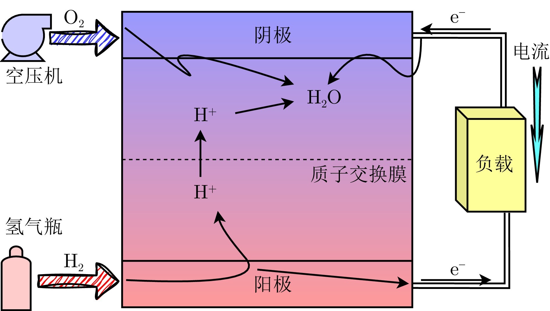 图1 质子交换膜燃料电池发电原理示意图