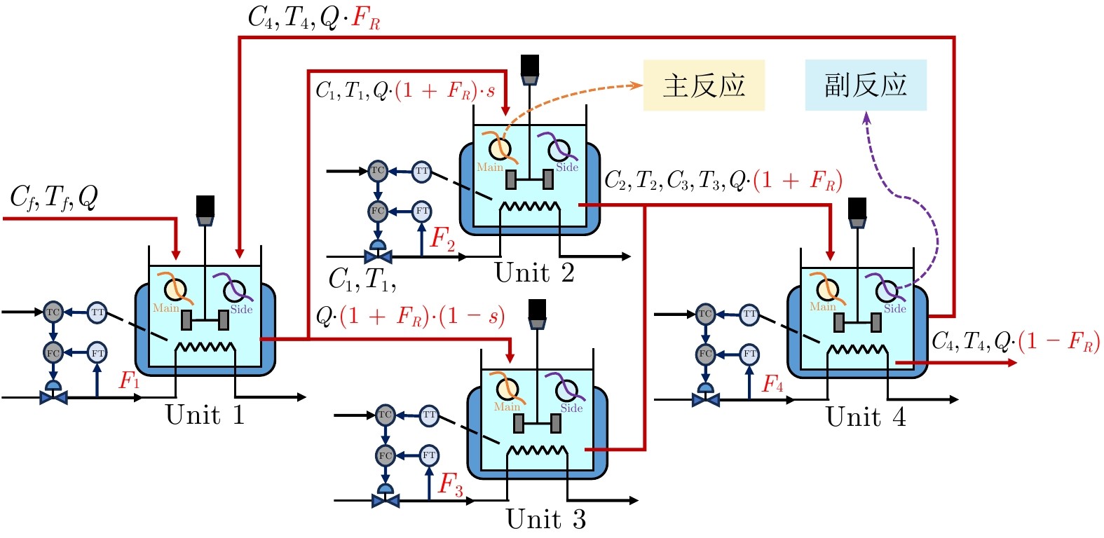 图2 闭环级联特征的CSTR系统示意图