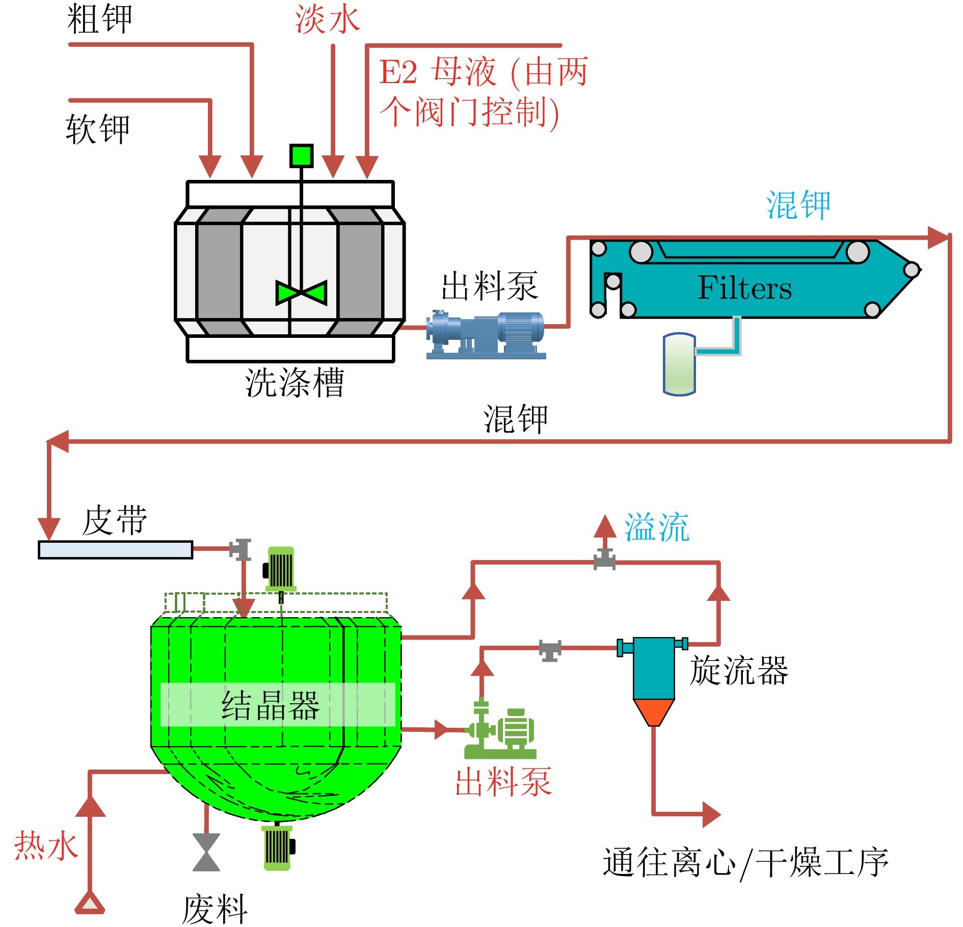 图3 盐湖化工洗涤−结晶过程示意图