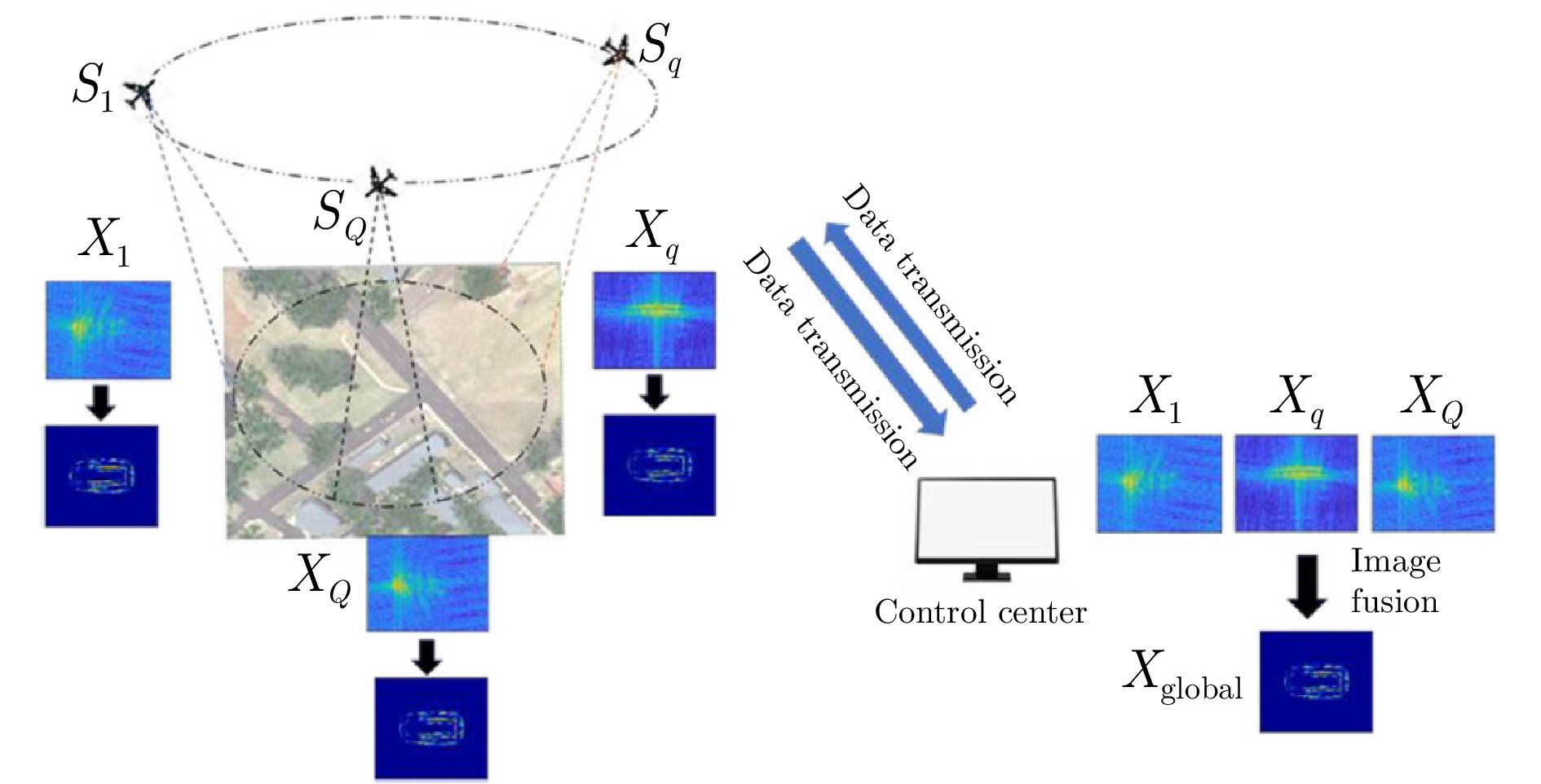 图2 无人机群SAR多角度观测感知成像过程示意图