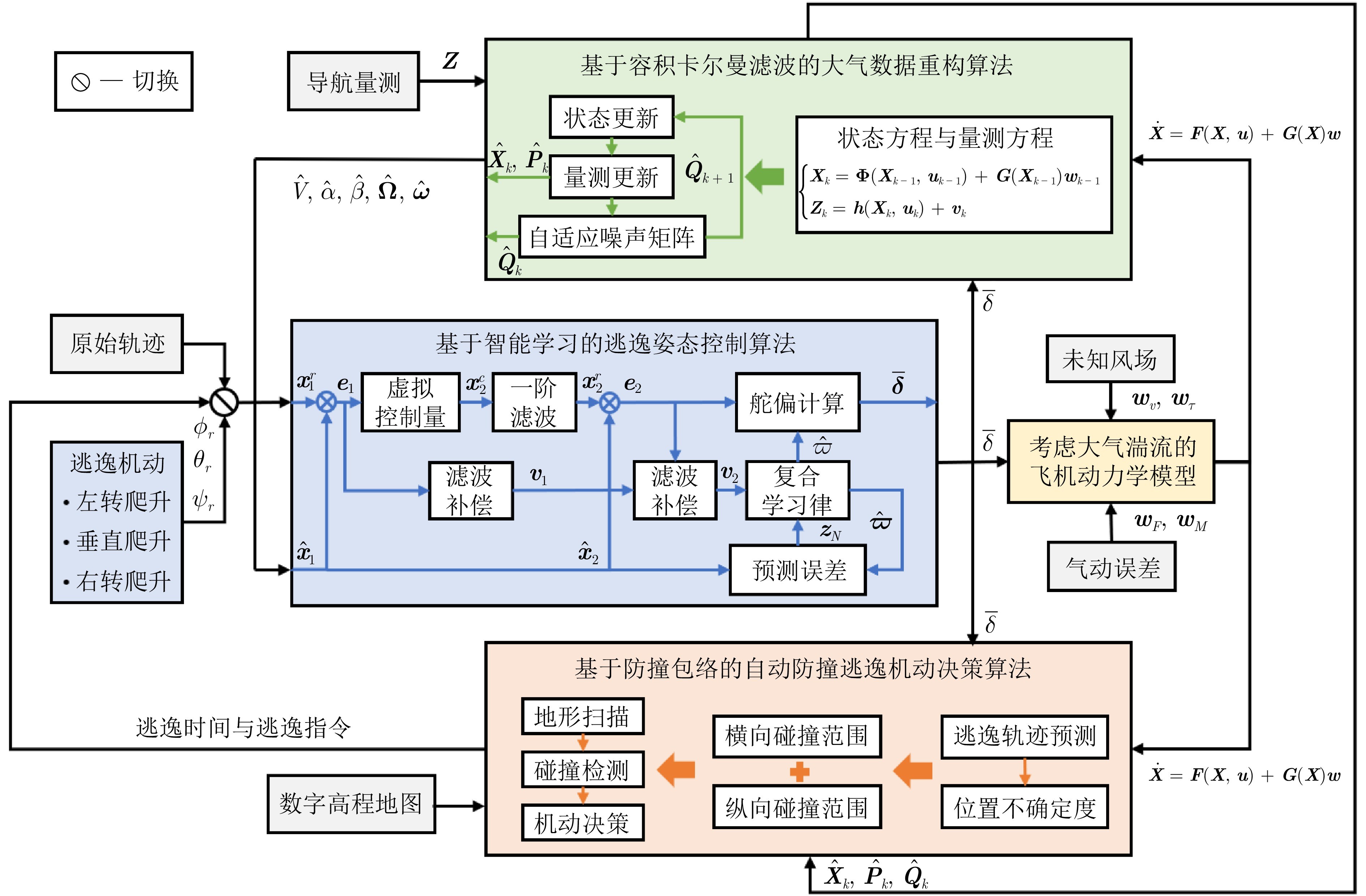 考虑大气传感器失效引发的环境干扰不确定与飞行状态不可测问题, 本文结合风场扰动下动力学特性与多源信息融合方法, 开展面向低空复杂环境的自主防撞鲁棒算法研究. 本文的主要贡献如下: