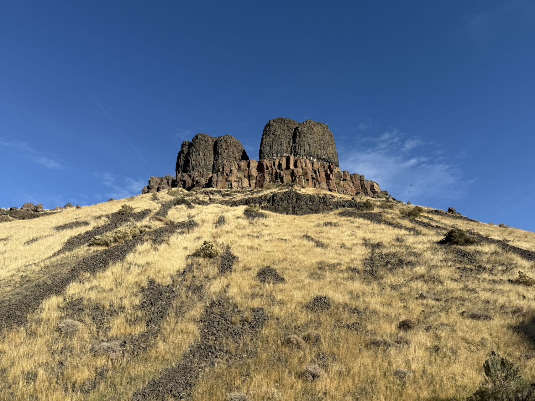 于是,我们没有折返,而是顺着哥伦比亚河峡谷的方向继续前行。道路在阳光下蜿蜒,像一条被风吹弯的银色丝带,延伸向远方。车窗外的世界越来越开阔,河谷的阴影悄然靠近。原本并没有明确目的地,只是随心顺着光与风走,直到地图上出现了一个名字——Twin Sisters Rock。