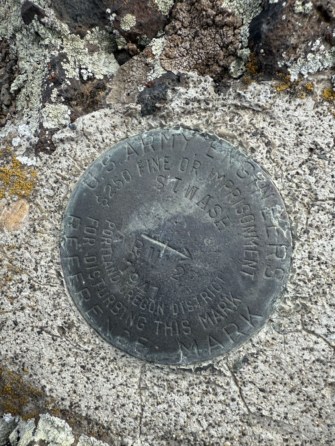 1947年美国工程兵在这里的山顶上留下了这个测量标志。这里是华盛顿州和俄勒冈州的分界线?