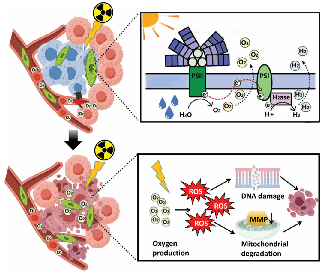 缺氧是放疗耐药的元凶之一(氧气是固定DNA损伤的关键)。活细胞提供了持续的供氧方案:
