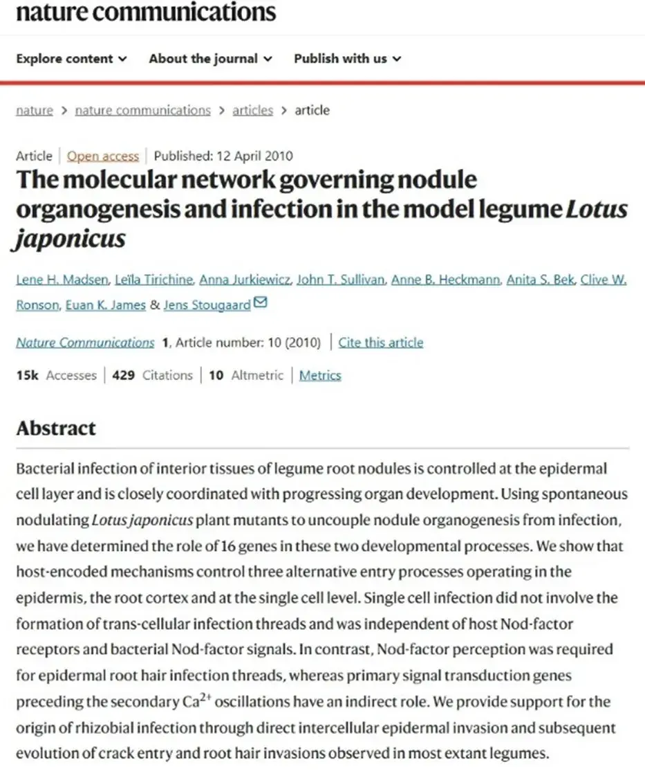 ▲ 丹麦奥胡斯大学 Jens Stougaard 教授是最早在 Nature Communications 发表 OA 论文的作者之一。他说,论文发表十年之后,其所在的植物-微生物共生互作分子遗传学领域,不论广度还是深度都已有突飞猛进的发展,其文章仍被广泛引用。