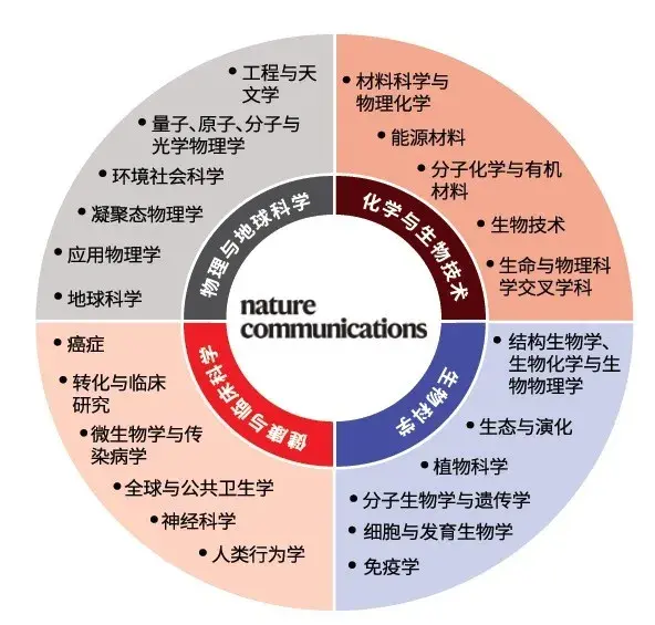 《自然-通讯》于 2010 年创立时,旨在打造一个多学科平台,以填补市场上多学科原创研究期刊匮乏的空白。如今,该刊已覆盖生物科学、健康科学、物理科学、化学、地球科学、社会科学、数学、应用科学及工程科学等九大学科的各个领域。
