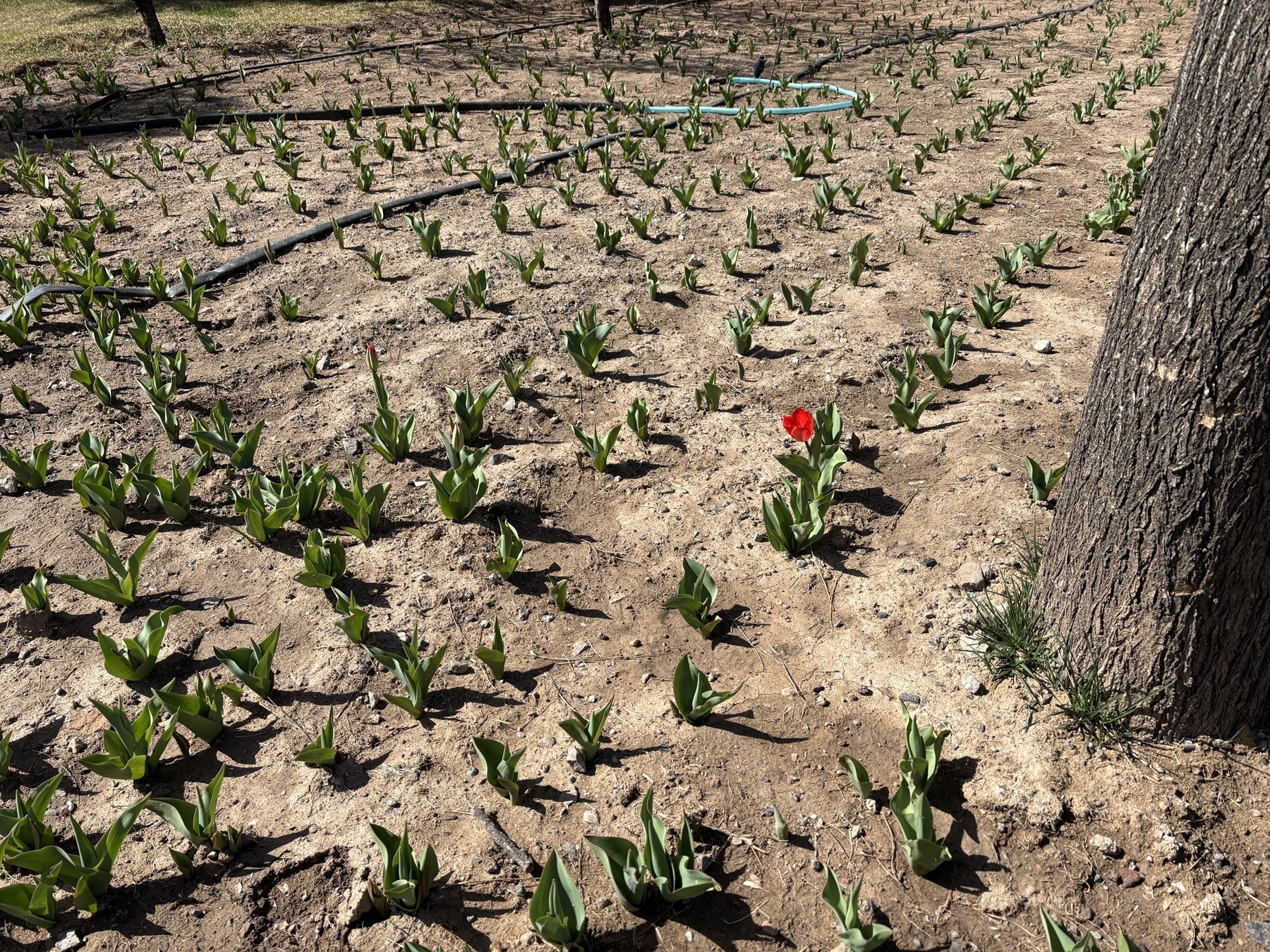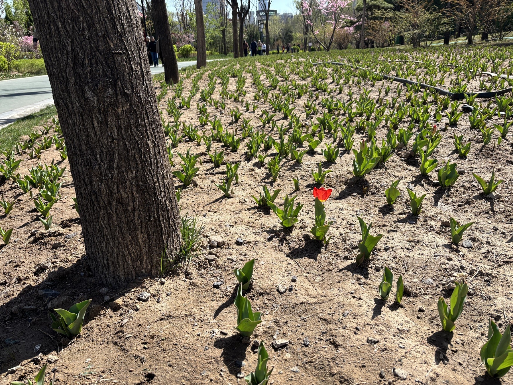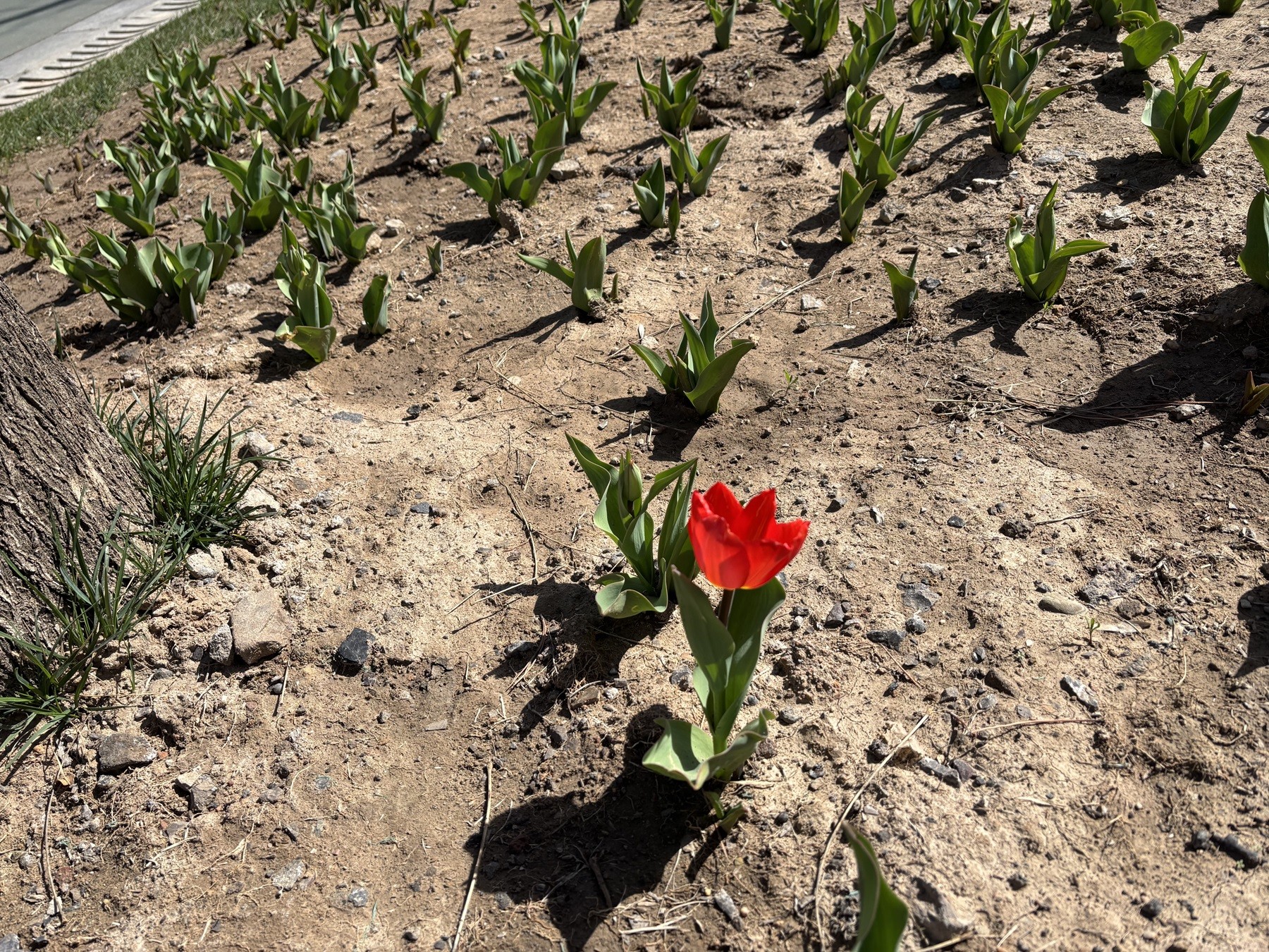 One single flower dares to bloom alone.