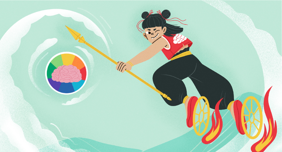 科学家用七种颜色绘制大脑功能网络,并借助哪吒的成长故事,帮助孩子理解青春期大脑正在发生的变化。