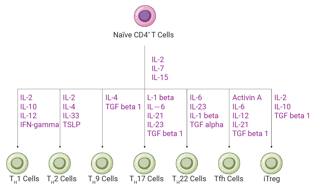 图 1. CD4+ T 细胞亚群培养和分化所需的细胞因子[3]。