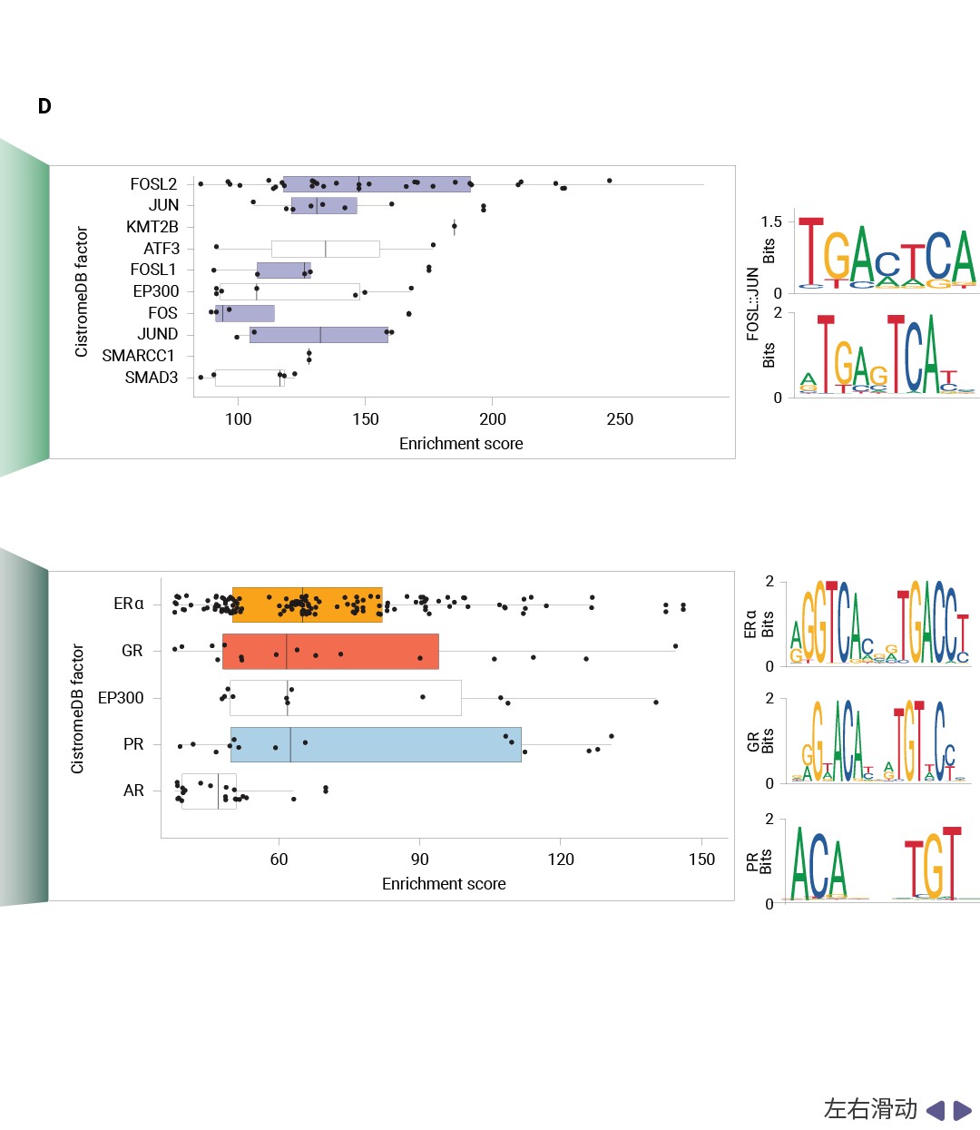 表观基因组重编程与转录因子转换是研究揭示的第一个关键机制。H3K27ac 作为活跃增强子/启动子的标志,其 ChIP-seq 分析显示,禁食联合 TMX 治疗导致了肿瘤表观基因组的广泛重编程。具体而言,禁食使 TMX 治疗下的肿瘤丧失了 289个 H3K27ac 富集区域,同时获得了 291 个新的 H3K27ac 位点。深入分析发现,丢失的 H3K27ac 位点显著富集于 AP-1 转录因子家族成员 (包括 FOSL2、JUN、FOSL1、FOS 和 JUND) 的结合 motif,这些转录因子已知能够促进乳腺癌细胞增殖和肿瘤生长。相反,新获得的 H3K27ac 区域则富集于类固醇激素受体 (Steroid Hormone Receptors, SHRs) 的结合位点,包括糖皮质激素受体 (GR) 、孕激素受体 (PR) 和雄激素受体 (AR)。
