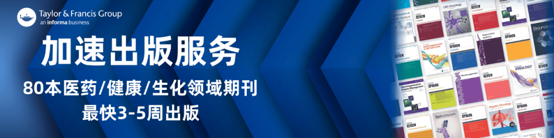 为帮助更多高质量研究保持竞争优势,Taylor & Francis现已为药物研发领域优质期刊开通加速出版服务,期刊最快3-5周内即可发表,帮助您快速将研究成果发表在高质量的同行评审期刊上!