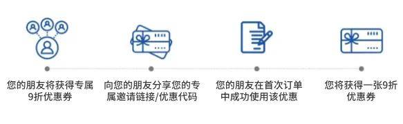 推荐人权益:好友成功下单后,推荐人同步获得9折优惠券,不设使用期限