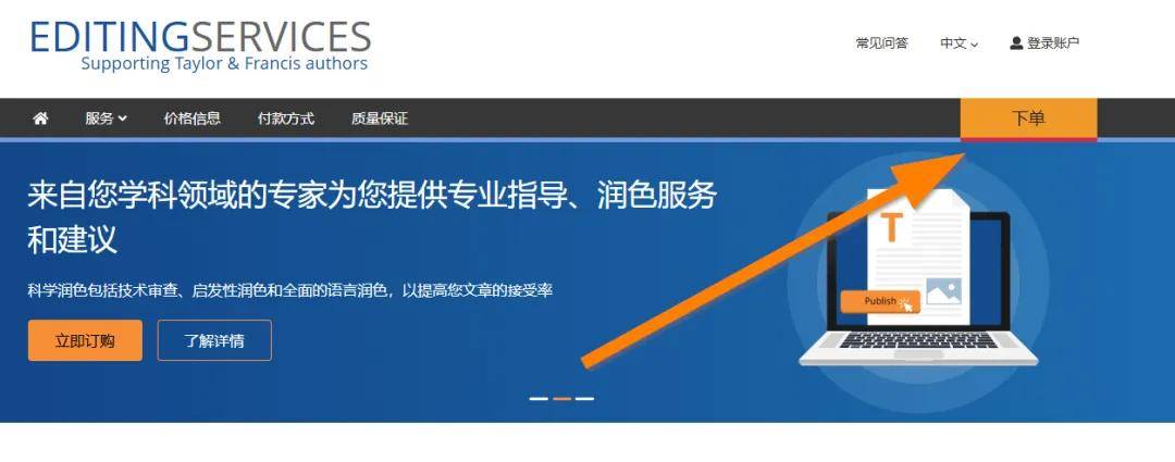 访问Taylor & Francis 编辑润色官方网站下单🖥️