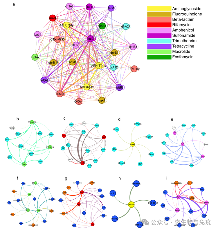 图4 耐药基因、质粒与可移动遗传元件共现网络