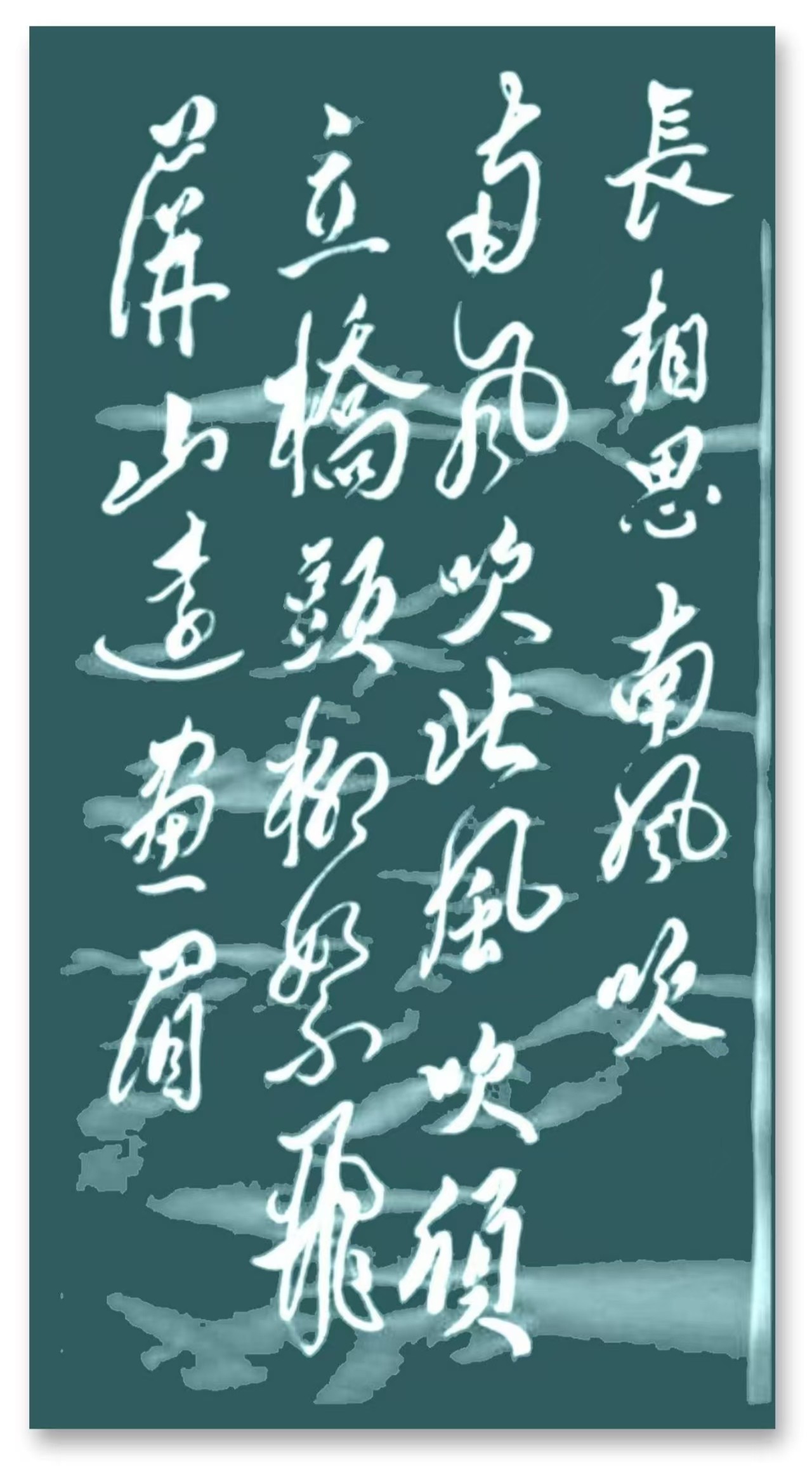 南风吹,北风吹,颀立桥头柳絮飞。屏山远画眉。