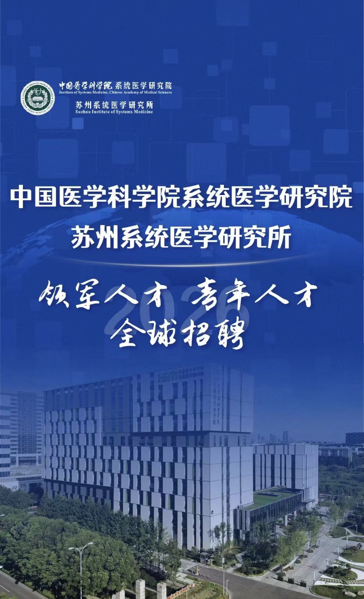 中国医学科学院系统医学研究院/苏州系统医学研究所2026招聘公告