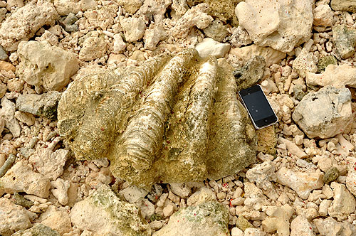 在归途中,我的采集袋比别同伴的都沉,原因是,大多数人都对细小而精彩的笔螺科、宝螺科贝壳感兴趣,唯独我偏爱这些又厚又重的大家伙,把自己弄得狼狈不堪。这还不算,我还把一块同伴丢弃的1公斤重的“大石头”背了回来,原因是,这块大石头,就是那硕大又硕大的大砗磲,被力大无穷的台风掀飞到岸上,又砸破其外皮,剩下的洁白如玉、润泽如脂的“碳酸钙结核”——难得的一块玉料!上面还有一层层的年轮,数一数,足有30多圈儿,原来光是生长这块玉料,就用30年多啊,我唏嘘着,加快了脚步......(博物地理 段煦 文/摄影)