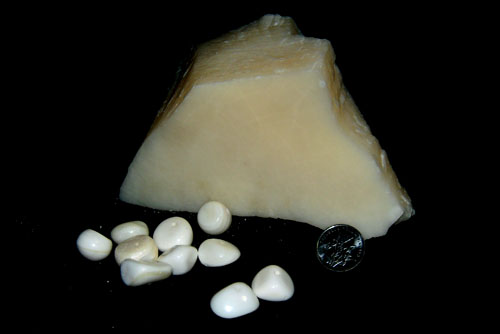 有机宝石砗磲样品与打磨后的工艺技术样品——经抛光、钻孔的砗磲珠