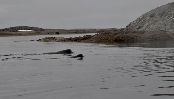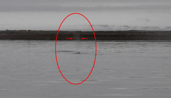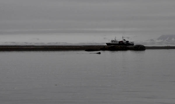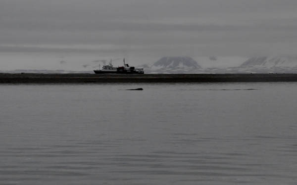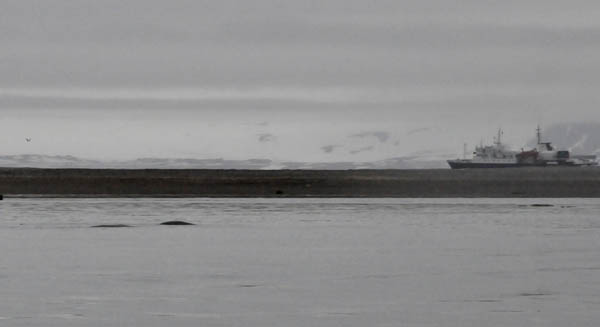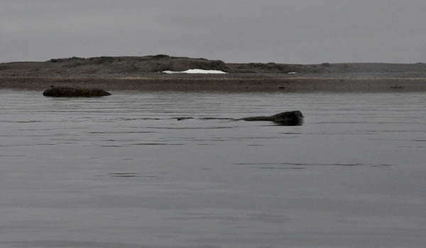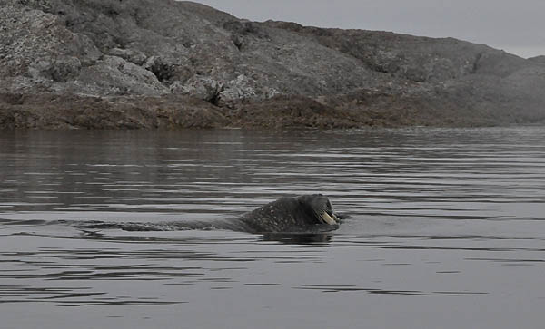 冲锋舟距那个家伙近了,开始有人用“大炮”精确“打击”了,“我拍的照片放大之后看见那家伙长胡子啦!一定是海豹!”,“我拍到它喷水啦!一定是巨头鲸”,这时,冲锋舟距离那家伙的距离更近了,似乎为了对我们的到来表示不屑,更高地抬起头来,哦,原来是满脸的大胡子,下面还长着两只长长的牙!!“嗨!原来是海象呀!”,这回,再没有人提出异议了。