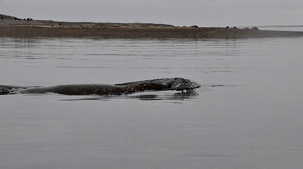 这天在冲锋舟上正在冲风,那风可真冷,借老郭那句——“这风刮得跟小刀子似的”,可气的是,那几个内衣穿得少的考察队员还添油加醋地跟我说,这羽绒服呀,穿在身上就像光膀子穿了件儿“塑料的西装”似的!大家都像乌龟一样缩着头,就那么缩着,一直缩着。忽然,不知谁喊了一句“鲸鱼!”,还没等大家把领子里的脑袋都伸了出来,不知是谁又喊了一句,“海豹吧?!”,这时候大家的脑袋都伸出来了,朝着手指的方向望去,一个长条状的黑影儿在起伏跌宕的浪花儿里一沉一浮。忽然,那家伙的脑袋露了出来,前方很臃肿,呈现出一个钝钝的直角,“是抹香鲸,我看见了大脑袋!”,“不对,抹香鲸比这个要大,是巨头鲸!”,“我怎么看着还是像海豹呢?”,群体内部开始内讧了;“要么是海怪吧?!”,“扯——”,这回一致找到打击目标了。忽然,那家伙的头部喷出一股好几米高的、伞状的水雾,明明还听到一声清晰的“噗——”,“没错!是鲸,一定是巨头鲸!”......
