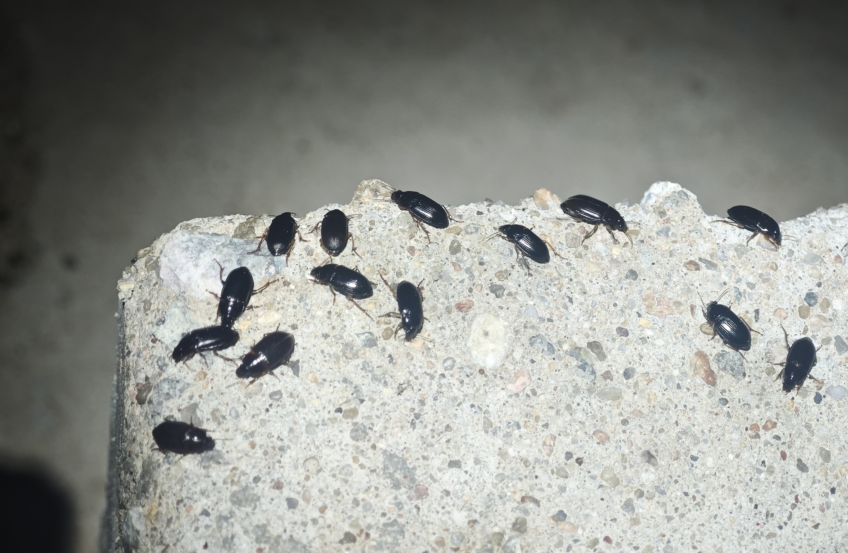傍晚,我们再次返回桑宝拉格水库,在水库岸边的沙地里进行灯诱。虽然雨中午就停了,但风依然很大,气温较低,灯诱只吸引来少量昆虫。我走到水库的大坝上,发现这里有大量步甲——或许是大坝上的灯每晚都亮着,步甲在此处富集(图10),我们一下捉了上百头。