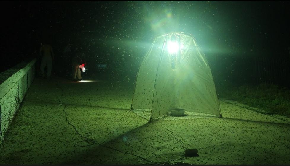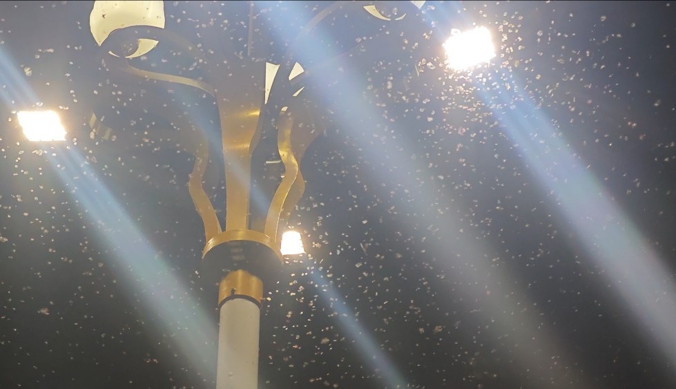 图 21 夜晚路灯周围漫天飞舞的步甲