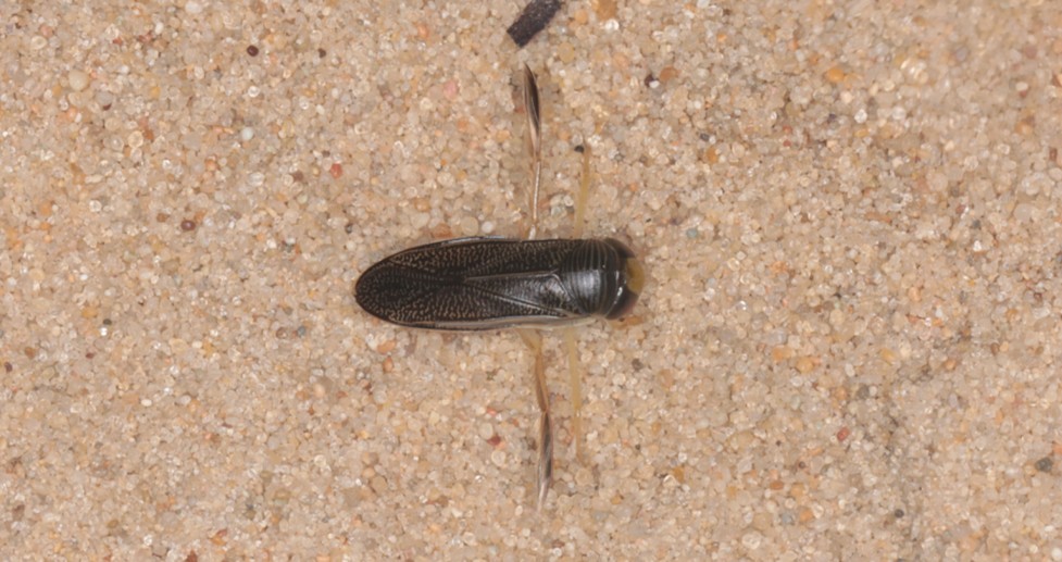 我们的疑问是:这些水生昆虫是躲避在潮湿的沙子里,还是从天而降?不得而知。我的判断是,雨季刚过,周围的临时水坑逐渐干涸,但水生的昆虫并没有完全离开或完全死去,而是躲避到潮湿的草根下或沙子里,一旦打开灯光,就爬出来朝灯光处聚集。