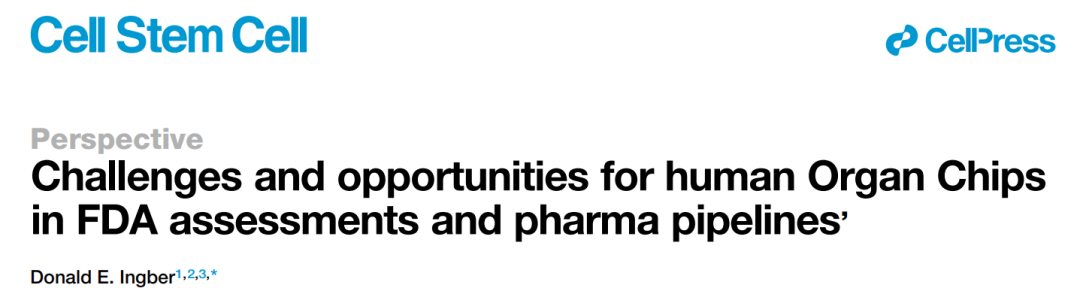 尽管器官芯片已在许多制药实验室中被探索,但尚未被纳入主流药物开发流程。在此背景下,Ingber教授基于15年研发及商业化器官芯片的经验,在《Cell Stem Cell》(影响因子:20.4)发表观点文章(Perspective),系统回顾了人体器官芯片技术如何从实验室走向监管认证的路径,并探讨了其未来的挑战与机遇。