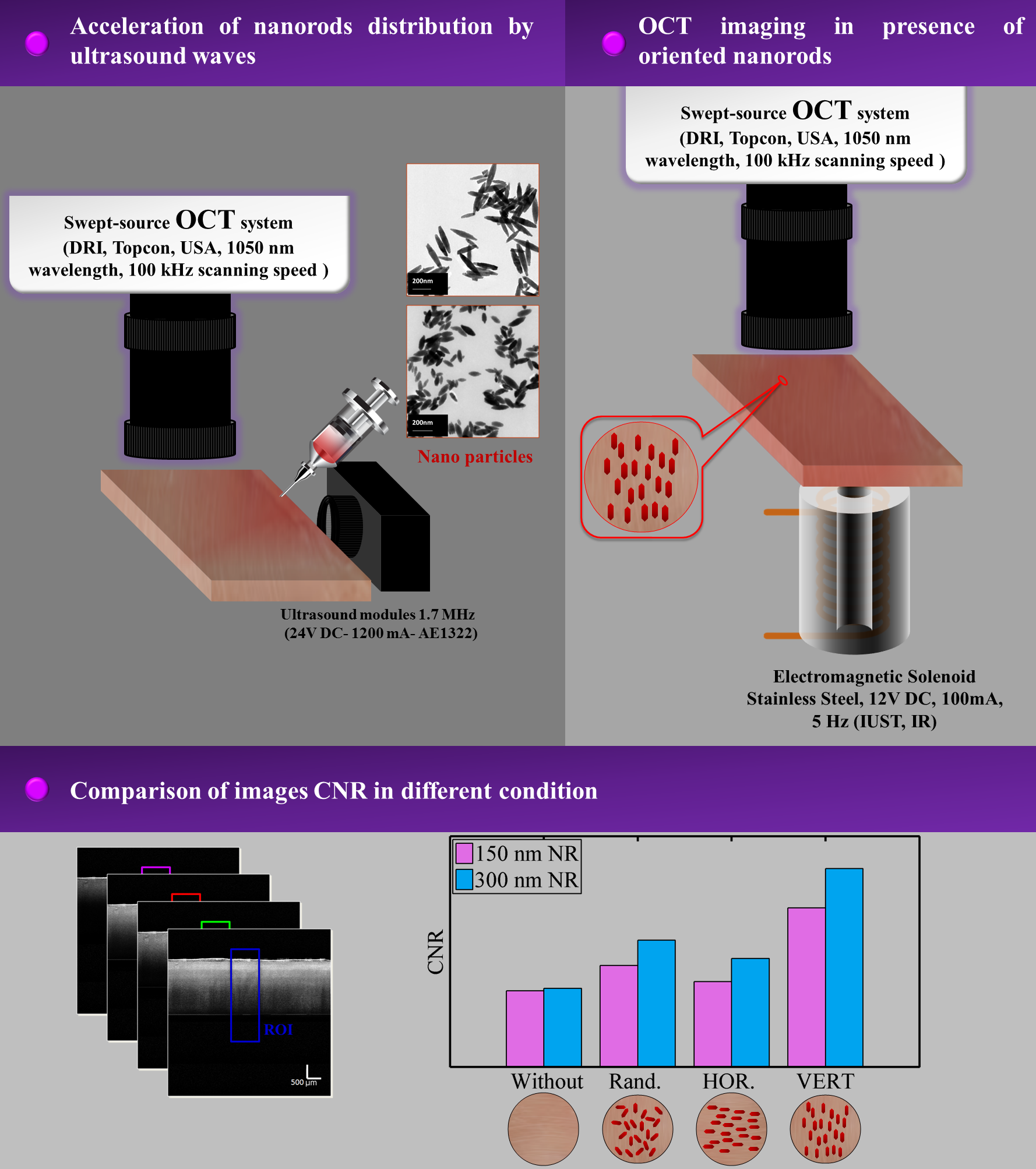 Optical coherence tomography with enhanced contrast using oriented magnetic nanorods
